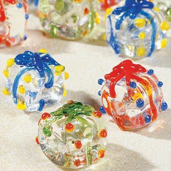 These Present Glass Beads come 50 beads to a package. Glass Beads can be used with Pony Beads, or Faceted Beads, or any other beads, to create multiple beaded craft projects. go to store