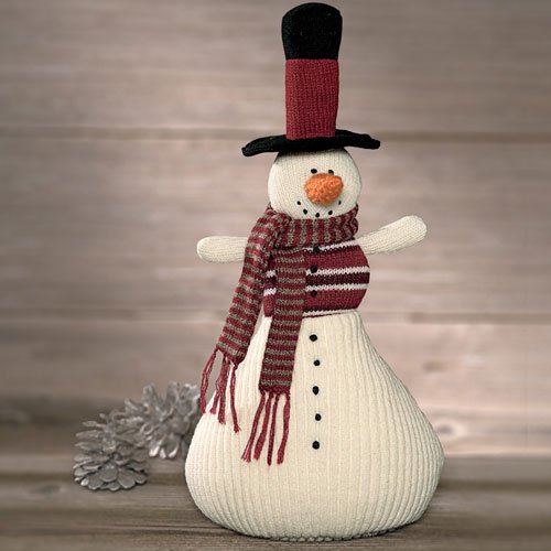 Hand Knit Snowman Wearing a Knit Top Hat and Scarf Medium 13.5 inch Winter Stuffed Animal Review