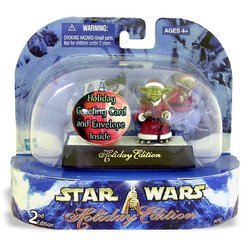 This specially designed set captures the imaginative vision of McQuarrie's art in collectible action figure scale. This set includes a Christmas card with Ralph McQuarrie artwork, showing Yoda with a bag of Christmas gifts. Measures approximately 3" tall. go to store